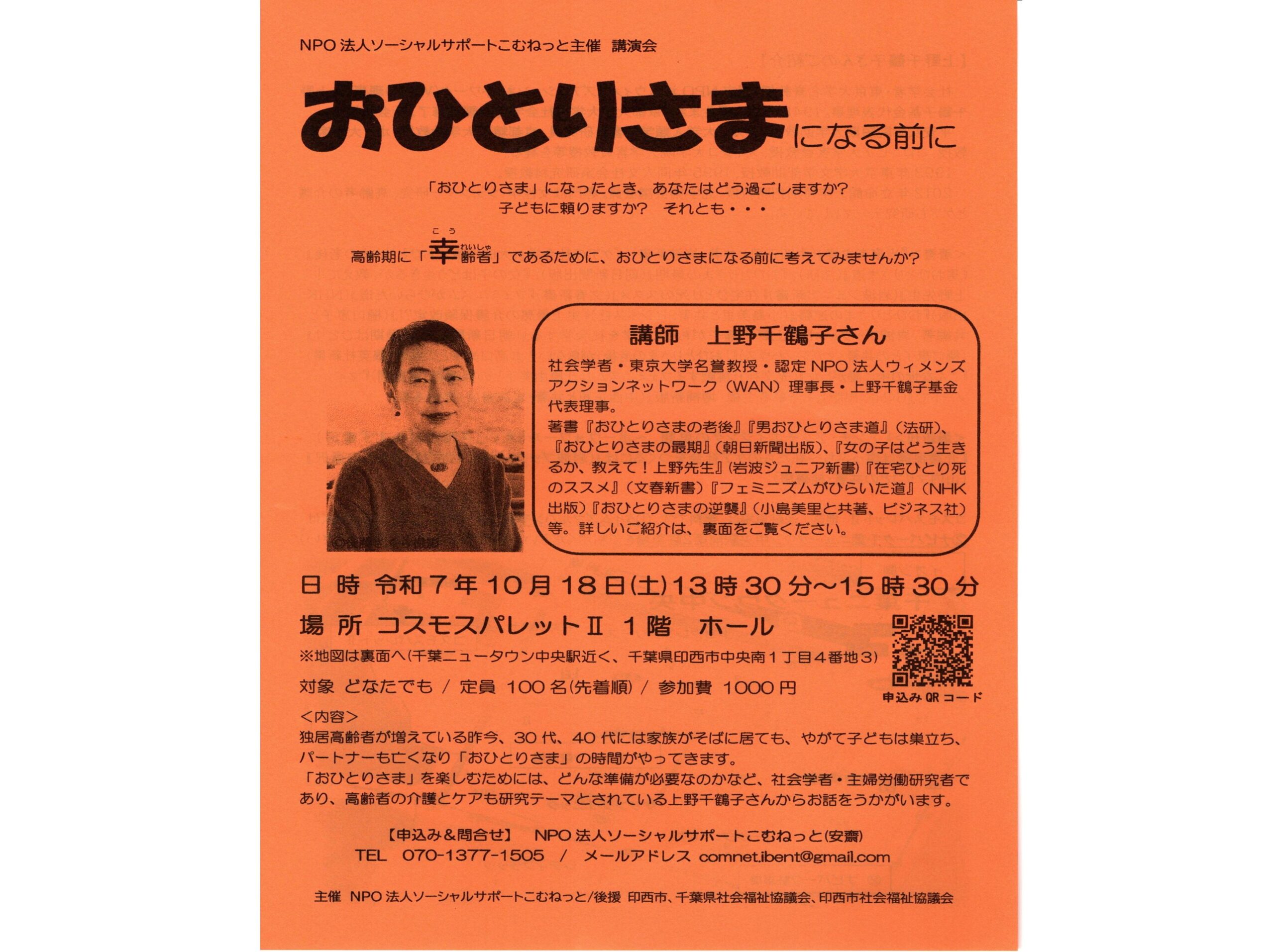 講演会「おひとりさまになる前に」2025年10月18日(土)開催。申込&問合せは「こむねっと」まで。